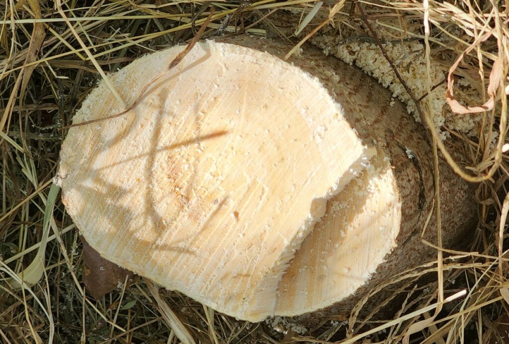 今回の作業は、主に間伐で、密集して木が生えているエリアで一部の木を切ることにより、森全体の木々の適切な成長を促すことに貢献しました。また、木を切った後は、枝を切落とし、約30㎝ずつに切分けて、薪を作りました。