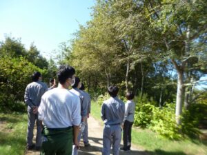 施設の説明を受けました。 緑地内の植物の説明を受けました。