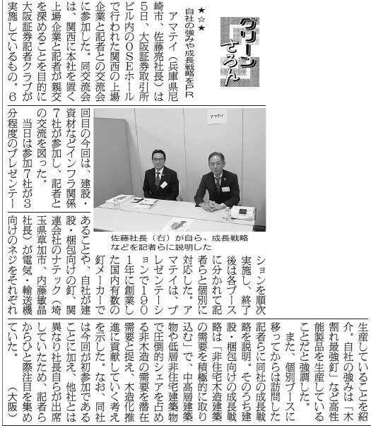 アマテイ株式会社|釘・ネジのアマテイ Amatei|兵庫県尼崎市 > メディア掲載 > 新聞・雑誌 > 日刊木材新聞に当社に関する記事が掲載されました