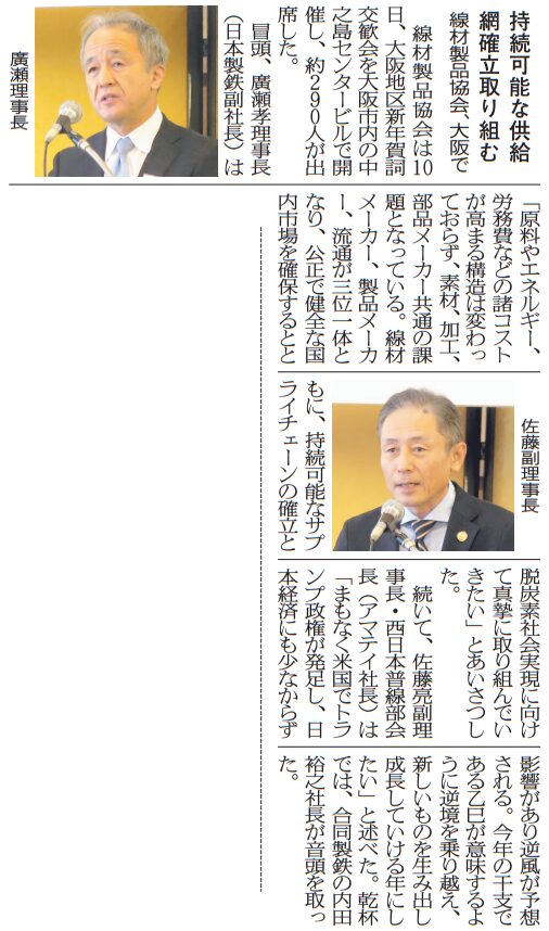(出典)2025年1月14日(火)付日刊産業新聞2面「持続可能な供給網確立取り組む 線材製品協会、大阪で」