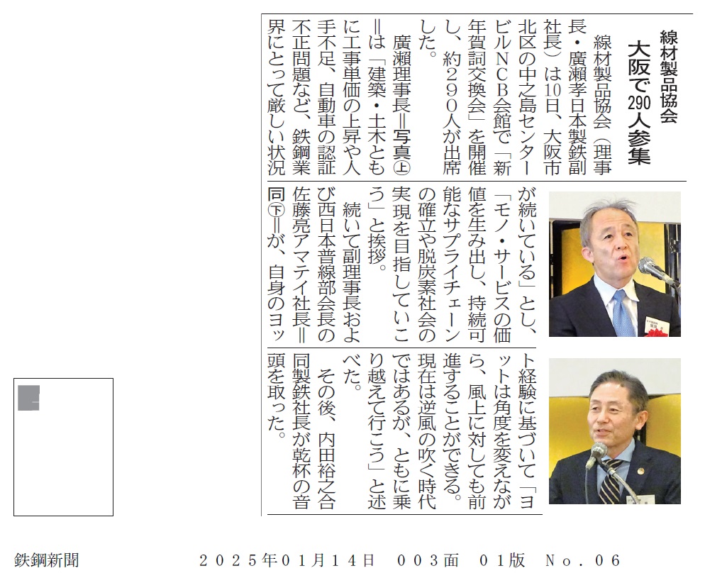 (出典)2025年1月14日(火)付鉄鋼新聞3面「線材製品協会 大阪で290人参集」